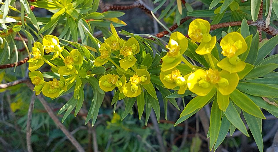 Come per le mimose che ravvivano in questo periodo i terrazzamenti liguri grazie suoi fiorellini perfettamente sferici e gialli , anche i fiori dell’Euphorbia ravvivano le scogliere e i dirupi presso il mare in quanto in questo periodo è l’unica pianta della gariga in fiore. La pianta adulta forma dei veri e propri cuscini sferici di colore verde da cui si dipartono bellissimi fiori gialli.