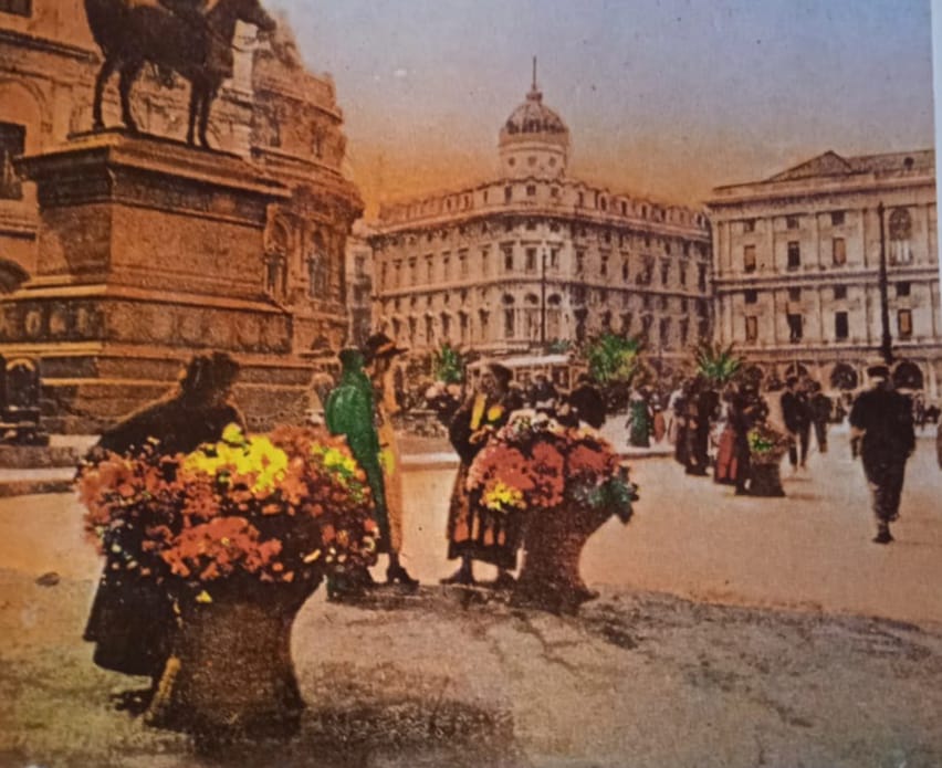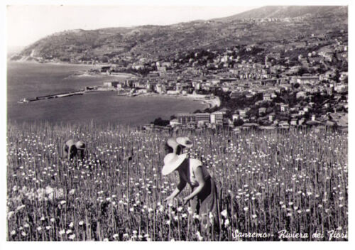 C’erano fiori giorno e notte, per ogni occasione del giorno e della notte. Di giorno spesso venivano usati come omaggi floreali e spesso anche portati in piazza del Ferrari a Genova per ringraziamento di un dono ricevuto o per farsi perdonare un peccato o semplicemente per abbellire la piazza. Di notte per i balli , per i misteriosi appuntamenti usati come separè dei caffè alla moda o per i palchi dorati dei teatri. I fiori venivano raccolti in mazzi compatti, li costruivano attorno ad un manico di scopa tenuto in grembo. Girando lentamente il bastone via via si legavano fiori di qualità e di colore diverso quasi a comporre un tappeto, poi attorno un pizzo e le carnose foglie di nespolo che facevano da supporto, Si levava il bastone, si legavano i gambi ed il mazzo era pronto per far arrossire di gioia o di vergogna qualche timida fanciulla. La coltivazione dei fiori a Genova e in Liguria, c’e sempre stata, fiori sono nati con l’uomo e forse prima dell’uomo. Ci sono libri del 400 che parlano di invio di rose, di garofani, per esempio ad un matrimonio principesco a Mantova. Le località dove si coltivavano e si raccoglievano era Quarto, la lunga dolce collina distesa sul mare. Ma l’industria è nata quando l’uomo ha imparato a dominare le leggi della natura ed a costruire fiori diversi, scegliendo forma, colore, momento della fioritura. C’è stato un tempo a fine 800 che da Genova partivano camelie per tutta Europa, persino a Mosca. Fiori recisi senza gambo, chiusi raccolti in scatolette di cartone, viaggiavano come sigari a portar gioia alle signore. Intanto a Nizza il poeta francese Karr, un giorno per far cosa bizzarra fa un mazzo di rose e le manda in diligenza a Parigi ad una sua amica, Le rose arrivano bene, sono bell, piacciono. Tutte le amiche chiedono fiori; i primi partono in omaggio e poi si incomincia a venderli. E così nasce a Ponente la grande industria del fiore reciso. Lo stesso Karr un giorno, va dal Santinetto, un agricoltore di Ospedaletti, e gli propone di mettere nelle sue fasce piante di rose, in Paese cominciarono a prenderlo in giro: “O Santinetto o cianta e reuse! . O Santinetto o cianta e reuse !-